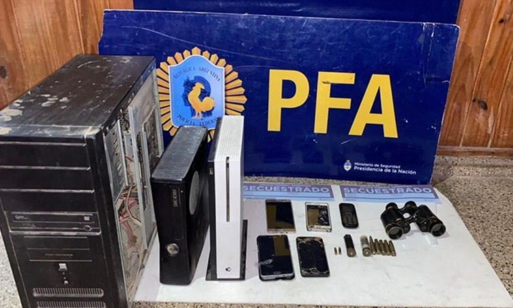 Una vez identificado el domicilio, los federales realizaron un allanamiento avalado por el Juzgado interventor, en el que detuvieron al acusado y secuestraron diversos artefactos electrónicos y algunos cartuchos de Fusil Automático Livianos (FAL), carabinas y escopeta.