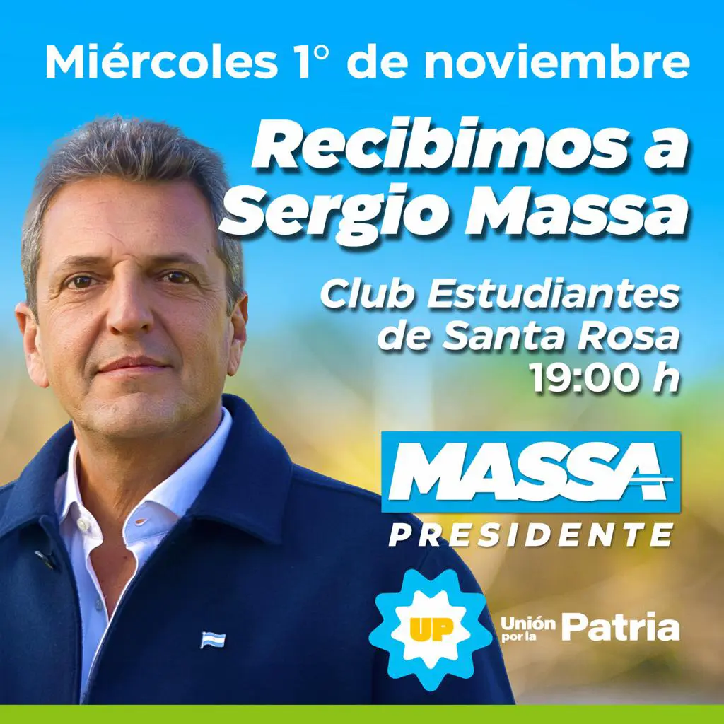 Este miércoles Sergio Massa pisará suelo pampeano para dar el puntapié inicial a su campaña de cara al balotaje presidencial del 20 de noviembre. El candidato de Unión por la Patria visitará Santa Rosa, donde tiene agendado un acto proselitista que marcará el regreso de la actividad pública luego de las elecciones generales.