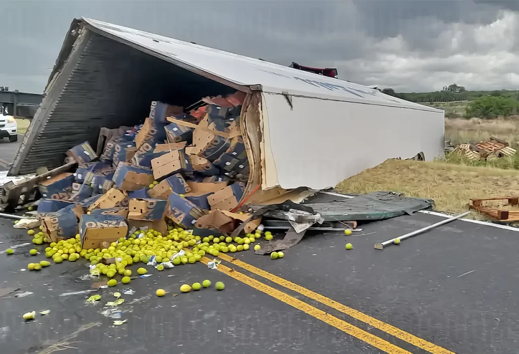 Un camión cargado con frutas y verduras que se dirigía desde Mendoza a Comodoro Rivadavia volcó en la tarde de ayer en la banquina de la ruta provincial 13, a la altura del paraje El Durazno, en La Pampa.