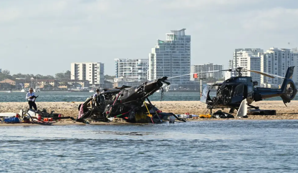 El otro helicóptero parecía estar en gran parte intacto en la escena del accidente, que está cerca del popular parque temático marino Sea World, según reportó la agencia de noticias AFP.