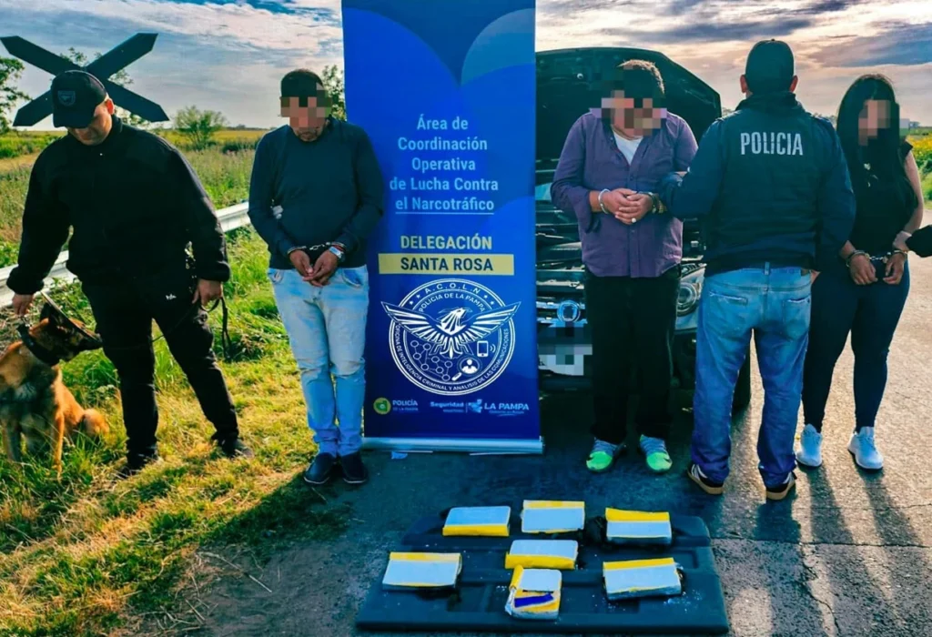 Un operativo coordinado por la Policía de La Pampa permitió secuestrar 7,798 kilos de cocaína valuados en unos 72 millones de pesos. La droga era trasladada desde la Ciudad Autónoma de Buenos Aires hacia Santa Rosa para su distribución. Hubo allanamientos en varias localidades y detenciones, con intervención de la Justicia Federal.
