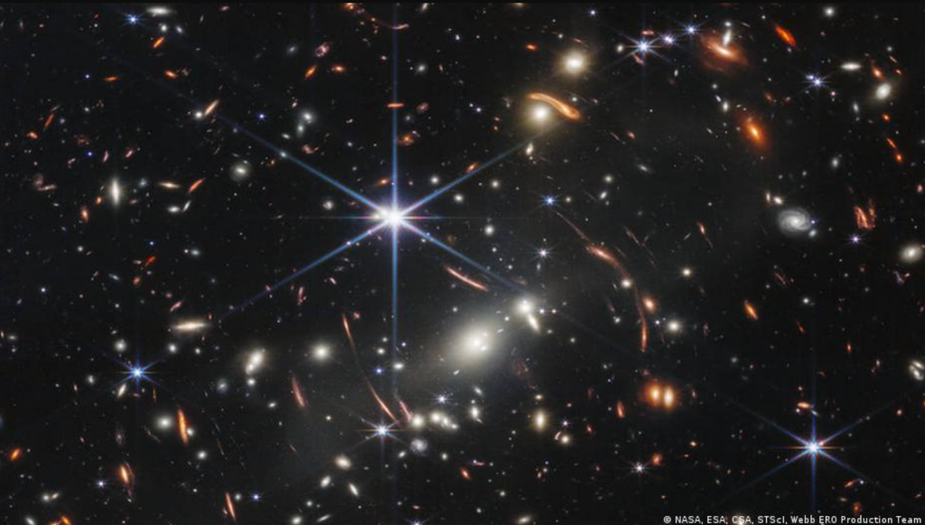 La materia oscura ya ha ocupado un lugar destacado en la primera imagen de «campo profundo» del Webb, una foto compuesta de un cúmulo de galaxias distante, SMACS 0723, que ofrece la visión más detallada hasta la fecha del universo primitivo gracias a un efecto de aumento llamado lente gravitacional.