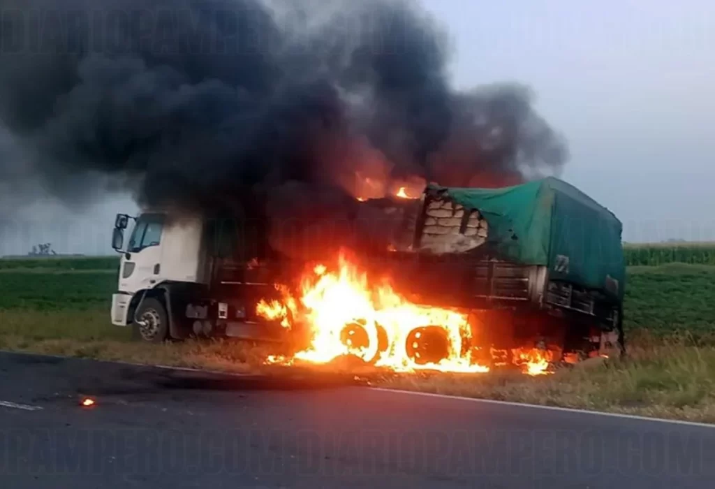 Un camión Ford Cargo tipo balancín, que transportaba una carga de alimento balanceado, se vio envuelto en llamas mientras transitaba la mencionada ruta. El incendio, según las primeras evaluaciones, se habría originado en el tren de ruedas traseras del vehículo, propagándose rápidamente y generando un espectáculo de fuego impactante.