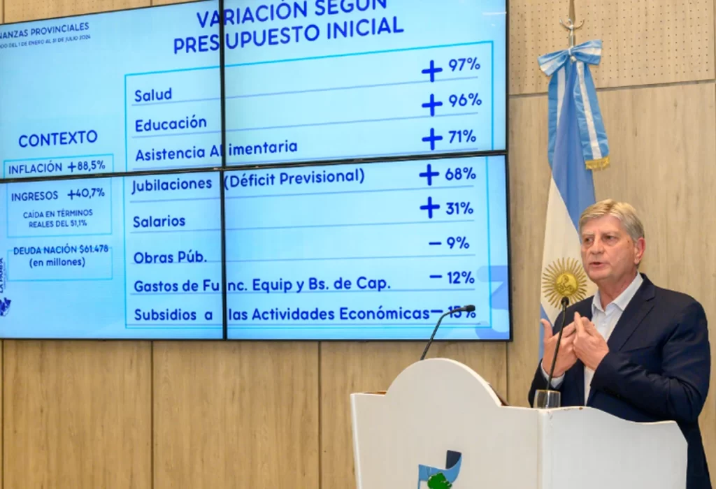 El gobernador detalló que, a pesar del incremento en el presupuesto, las prioridades se han reajustado, con aumentos significativos en Salud (97%), Educación (96%) y Alimentación (71%). Sin embargo, se ha registrado una disminución en la inversión en obras públicas y en subsidios a la actividad económica.