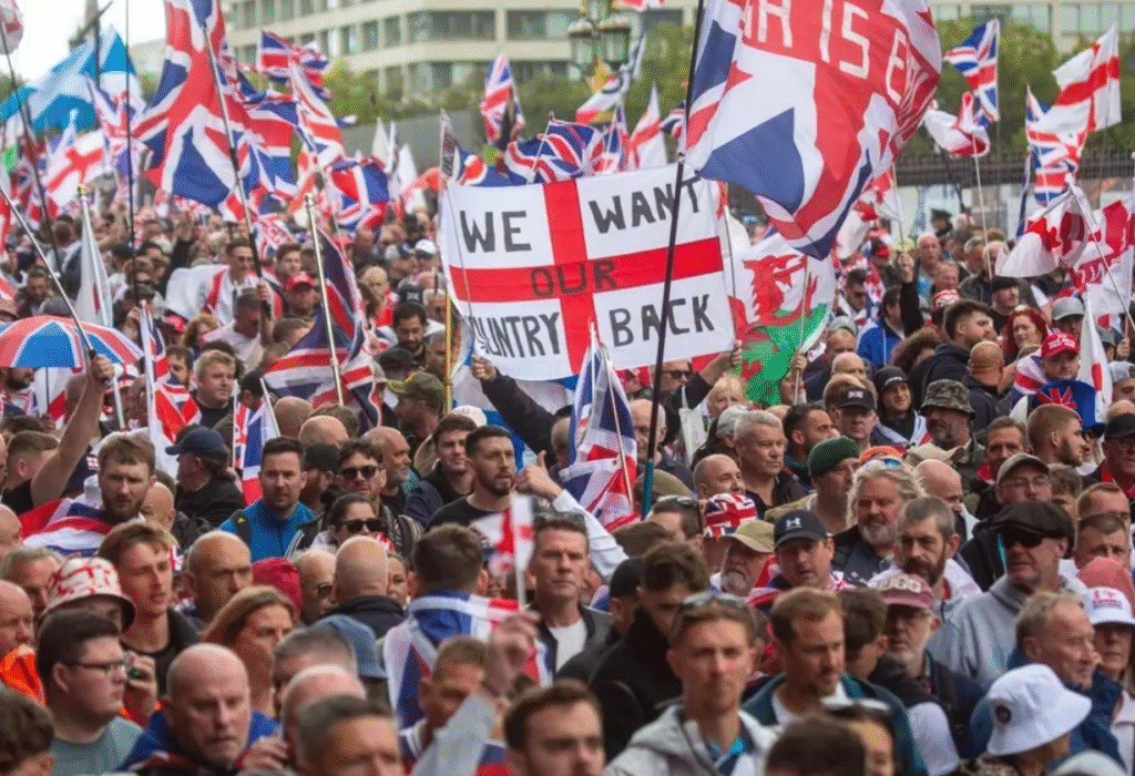 Infórmate en DiarioPampero.com – Más de 100.000 personas participaron en una manifestación en Londres convocada por Tommy Robinson, líder de extrema derecha, para rechazar el aumento de la inmigración ilegal. La protesta, bajo el lema “Unir el Reino”, inició en el sur de la ciudad y avanzó hacia la zona gubernamental, con banderas británicas y pancartas como “detener las pateras”. En el norte, 5.000 antirracistas marcharon en apoyo a los solicitantes de asilo. La Policía desplegó 1.600 agentes, pero varios sufrieron agresiones. Oradores incluyen a Eric Zemmour y Petr Bystron.