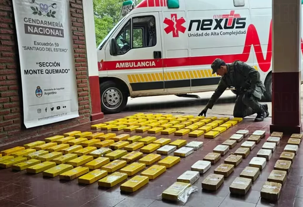 En un nuevo golpe al tráfico de drogas en Argentina, las autoridades han descubierto un cargamento de 134 kilos de cocaína ocultos en una ambulancia. El hallazgo tuvo lugar en un control realizado por agentes de Gendarmería en Santiago del Estero.