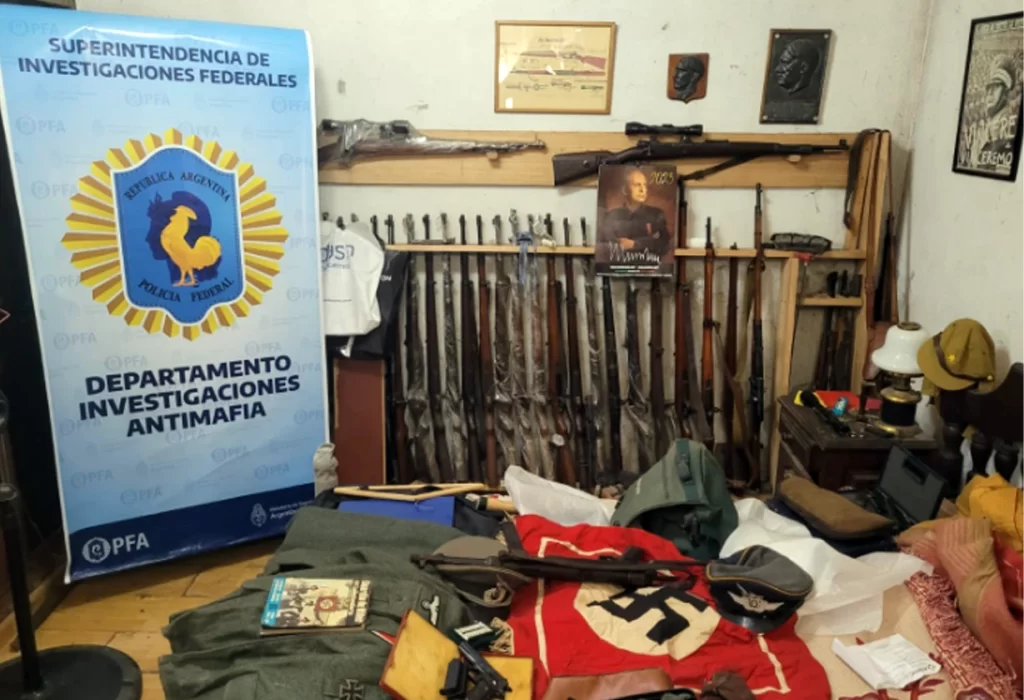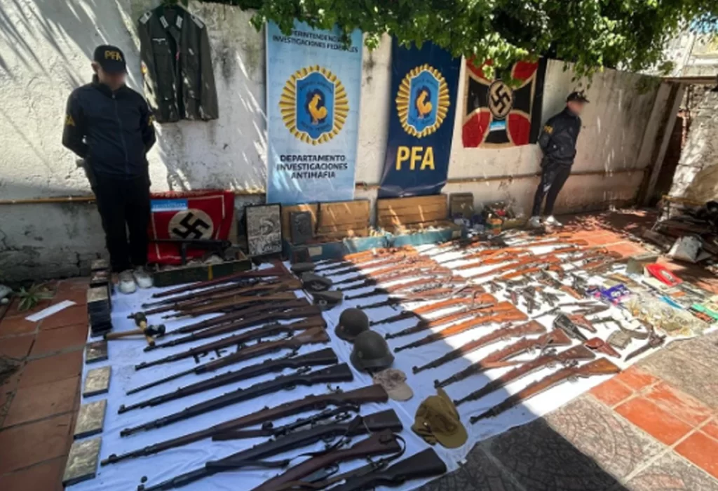 En un operativo llevado a cabo en el partido de Quilmes, provincia de Buenos Aires, la Policía Federal Argentina incautó una importante cantidad de armas y objetos de simbología nazi. La acción, encabezada por el Departamento Antimafia, culminó con la detención de un hombre acusado de participar en una red internacional de tráfico de armas.