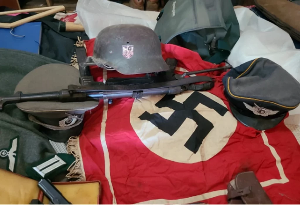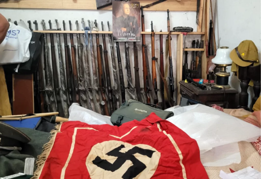 Con las pruebas reunidas, el Juzgado Federal de Quilmes, a cargo del juez Luis Antonio Armella, autorizó el allanamiento de la vivienda. Durante el procedimiento, las fuerzas de seguridad incautaron un arsenal que incluía 43 fusiles, una ametralladora 9 mm, 15 pistolas, bayonetas, pólvora y más de 5.500 piezas de munición. Además, se encontraron objetos de simbología nazi como bustos de Adolf Hitler y Benito Mussolini, uniformes de la Segunda Guerra Mundial, y otros elementos vinculados a ese régimen.