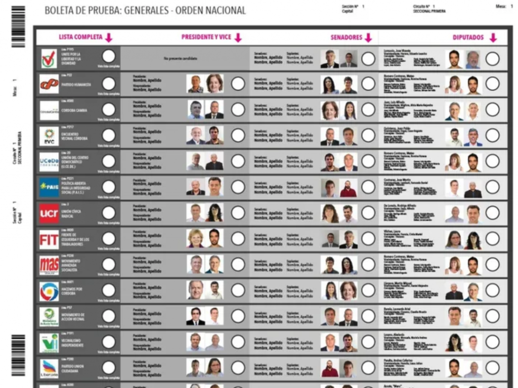 La Boleta única de papel tendrá impresos los nombres de los primeros cinco candidatos de la lista de diputados nacionales, y que además incluirá fotografías a color de los primeros dos candidatos (de acuerdo a la ley de paridad de género serán un hombre y una mujer, o viceversa).