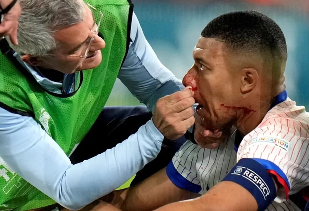 El delantero estrella de la Selección Francesa, Kylian Mbappé, se enfrenta a la posibilidad de perderse gran parte de la Eurocopa 2024 después de sufrir una fractura nasal durante el partido inaugural contra Austria. El incidente ocurrió cuando Mbappé saltó para cabecear y accidentalmente impactó el hombro de un defensor austriaco, resultando en un profundo corte y obligándolo a abandonar el campo en medio de una escena sangrienta y visiblemente dolorosa.