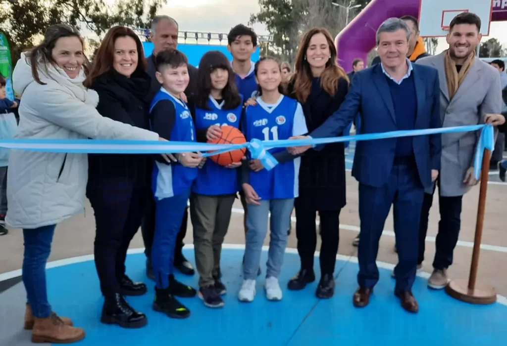 En Vértiz se inauguró un playón multideportivo en el marco del Programa Mejor Barrio, con una inversión de aproximadamente 12 millones de pesos. El espacio cuenta con luminarias y canchas demarcadas para fútbol, vóley, básquet, entre otras disciplinas. El intendente Luis Giacomino agradeció la presencia de las autoridades y destacó que es la primera vez que una ministra de la Nación visita Vértiz. Giacomino recordó que la propuesta surgió de un encuentro del programa provincial Aprender a Gobernar, donde los jóvenes de la localidad expresaron la necesidad de contar con un espacio al aire libre para practicar deportes. Agradeció al Ministerio de Desarrollo Social de la Nación por el envío de fondos y animó a los padres a confiar en este espacio, que también cuenta con cámaras de videovigilancia.