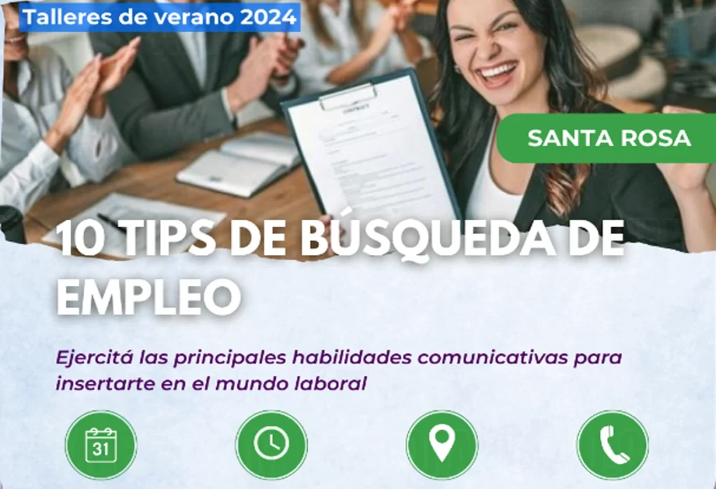 El enfoque específico del Taller «10 Tips para la búsqueda de empleo» es proporcionar herramientas comunicativas que faciliten la inserción en el mundo laboral. Se pondrá especial atención en los aspectos clave que permitan mejorar y ampliar las oportunidades de acceder a un empleo de calidad, adaptado a las habilidades, experiencias y expectativas de cada participante.