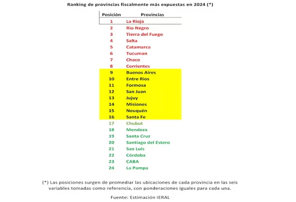 La sorprendente ubicación de cada provincia en los tres niveles de vulnerabilidad se justifica por diversas variables. Por ejemplo, Santa Fe, con un 35% de exportaciones sobre su producto, busca apuntalar su economía. Sin embargo, enfrenta un elevado nivel de gasto corriente, lo que podría explicar la advertencia del gobernador Maximiliano Pullaro sobre no sacrificar el equilibrio fiscal provincial en beneficio del equilibrio nacional.