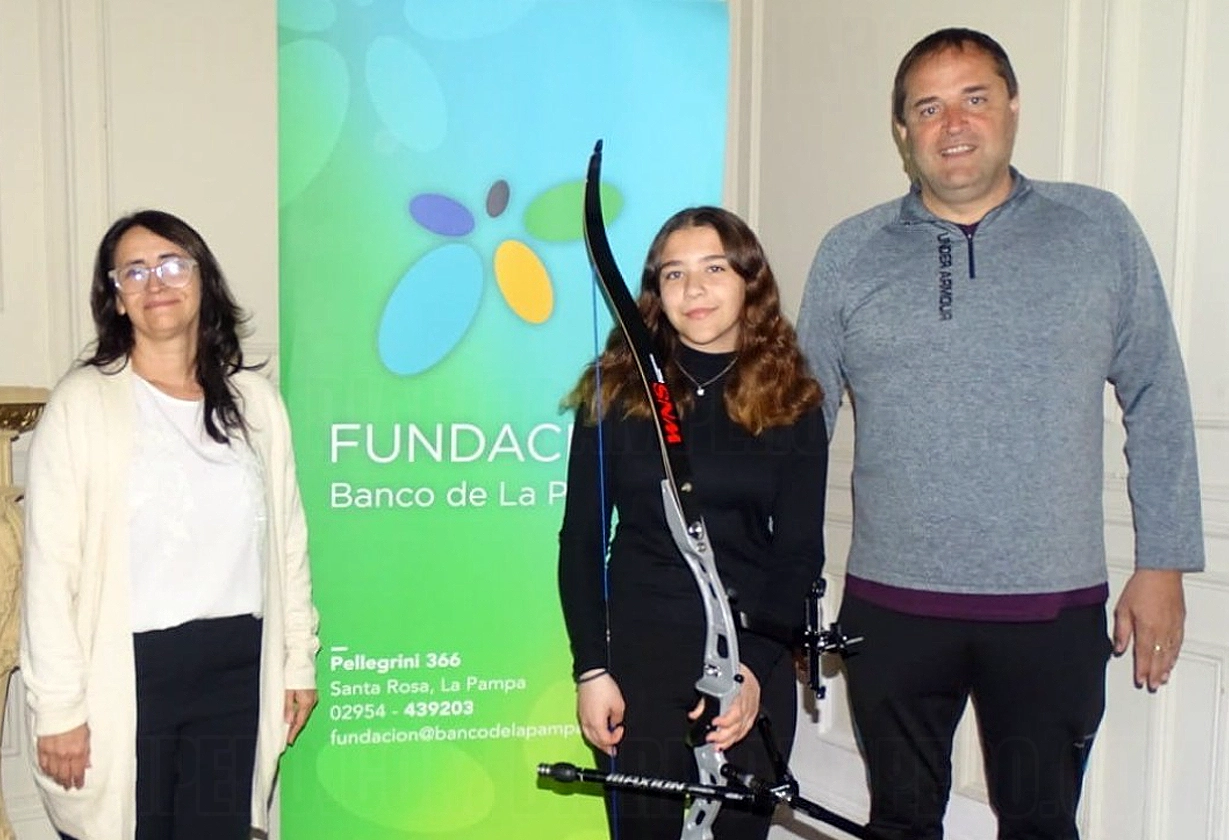 La joven tiradora santarroseña, Lourdes Alves, de 15 años, recibió un arco recurvo olímpico gracias a una donación de la Fundación Banco de La Pampa y el Gobierno provincial