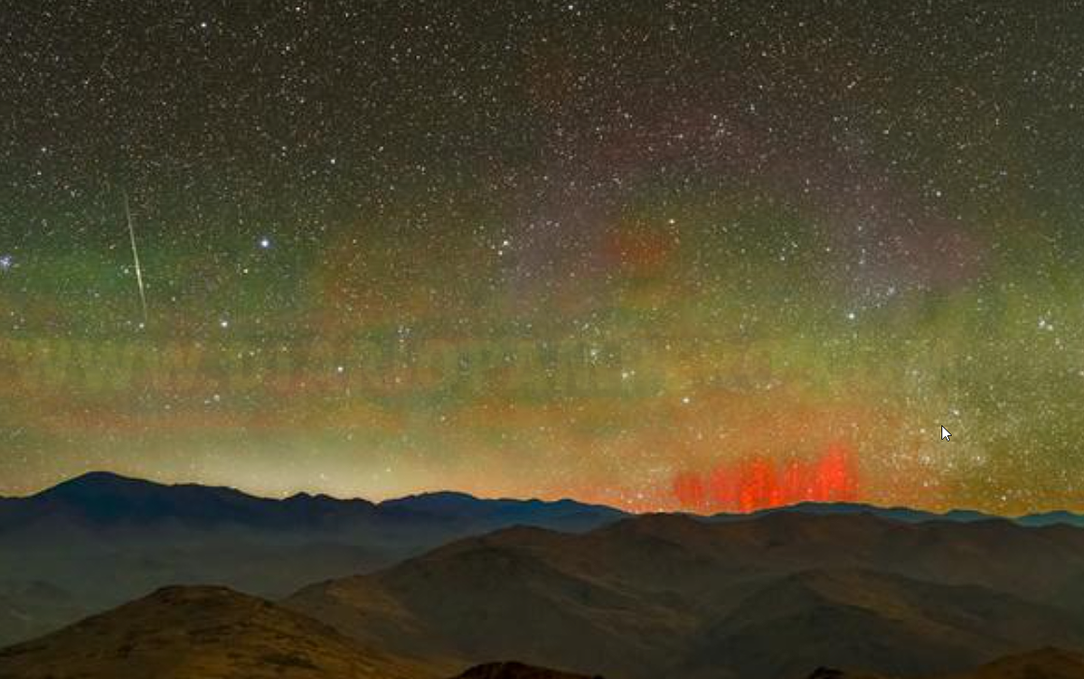 Avistan extrañas luces rojas que brillan en el cielo del desierto de Atacama en Chile La imagen publicada por el ESO muestra un raro fenómeno conocido popularmente como «duendes rojos».
