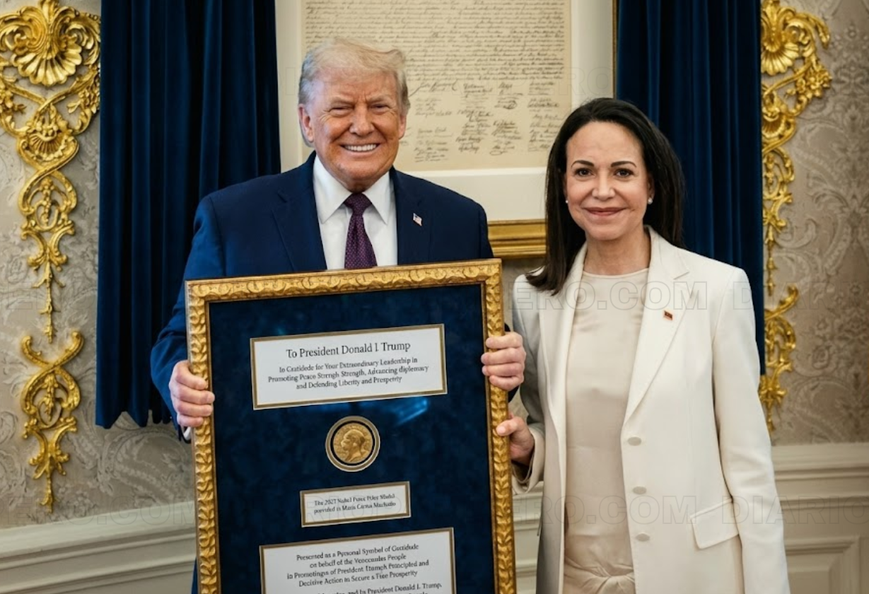 Encuentro en la Casa Blanca: Donald Trump recibe el Nobel de la Paz de manos de María Corina Machado y dialogan sobre Venezuela.