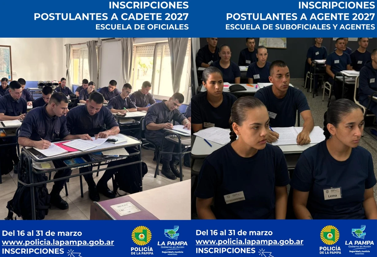 Inscripciones abiertas para las carreras de oficiales y agentes de la Policía de La Pampa con ingreso en 2027 hasta el 31 de marzo.