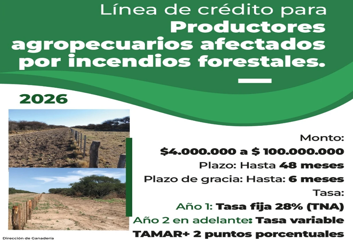 Créditos provinciales para productores afectados por incendios en La Pampa, con montos elevados, plazos flexibles y acompañamiento técnico oficial.