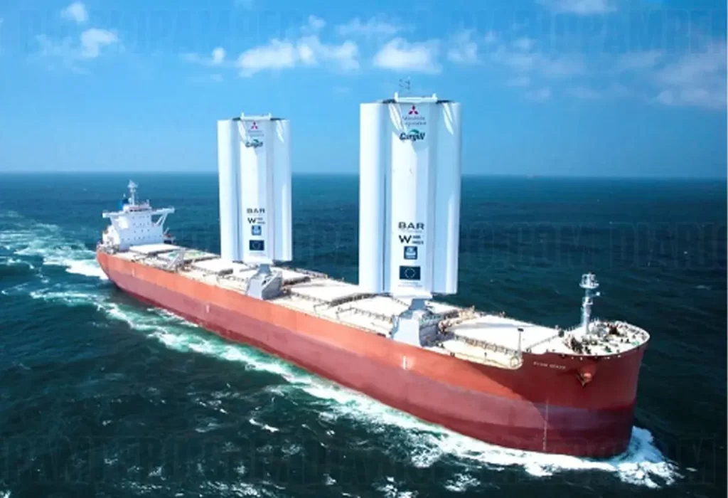 El Pyxis Ocean, propiedad de Mitsubishi Corporation y en colaboración con BAR Technologies y Yara Marine Technologies, se destaca como el primer buque de granos impulsado por energía eólica con su sistema de velas WindWings. Estas asombrosas velas de ala grande, que alcanzan los 37,5 metros de altura, han sido instaladas en la cubierta del buque para capturar y aprovechar la fuerza del viento. Este enfoque pionero busca lograr ahorros de combustible de hasta un 30 por ciento en promedio, y podría tener un impacto aún mayor si se combina con el uso de combustibles alternativos. El Pyxis Ocean, tras su construcción en el astillero COSCO en China y la instalación de las alas, ha emprendido su viaje inaugural, marcando un hito en la industria marítima hacia la descarbonización.